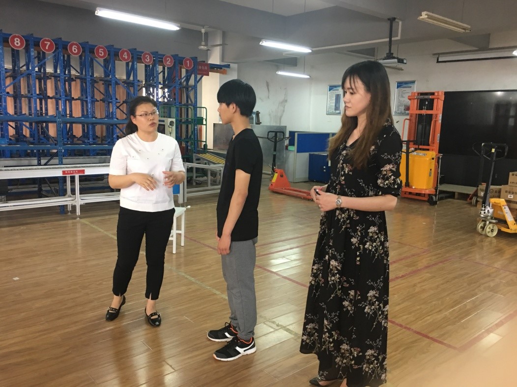 会后,王贵槐同志和叶俊同志一行携该生参观了我校实训基地,向该生介绍了我校特色专业的办学理念和先进设备。机电工程学院副院长刘滨带领该生参观了湖北省先进制造技术职业教育实训基地和现代传动与控制技术实验实训中心,介绍了机器人、3D扫描仪、联轴器、3D打印机和激光打印机等先进仪器的工作原理。在物流学院,肖丽霞和肖萌老师带领参观了国家现代物流职业教育实训基地、物流流程再现实训中心和物流新技术应用实训中心,介绍了物流专业的专业特色及专业优势。在汽车学院,王贵槐同志带领该生参观了汽车实训基地和与上汽通用汽车合作建设的国内一流的ASEP示范教学中心,了解新能源混合动力汽车和纯电动车的动力特性,习得了汽车结构相关知识。