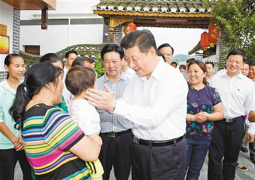 2015年6月16日,习近平在遵义县枫香镇花茂村看望村民。
