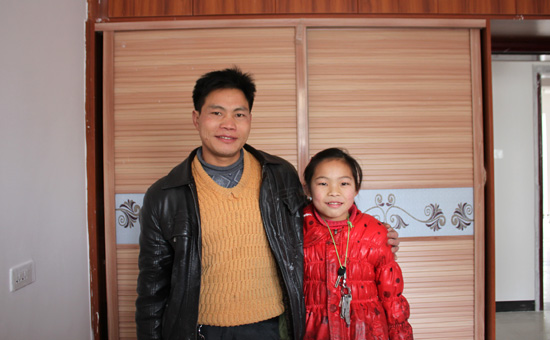 高峰村易地搬迁的田君福和女儿在城里的新家。中国网/中国发展门户网 魏博 摄