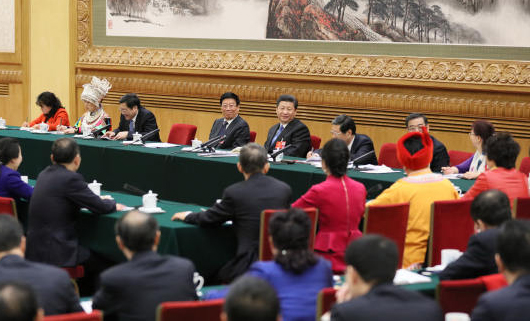 2016年3月8日,习近平参加十二届全国人大四次会议湖南代表团的审议。